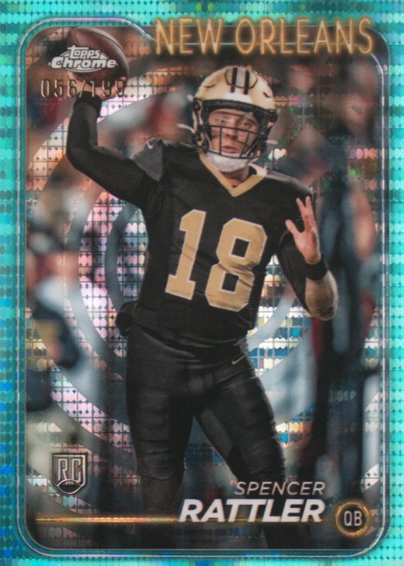 This card is 1 of 57 Spencer Rattler's card variations in the 2024 Topps Chrome set being tracked by Sports Card Investor, including Base, Camo Wave Refractor, Negative Refractor, Pink Refractor, and Prism Refractor.