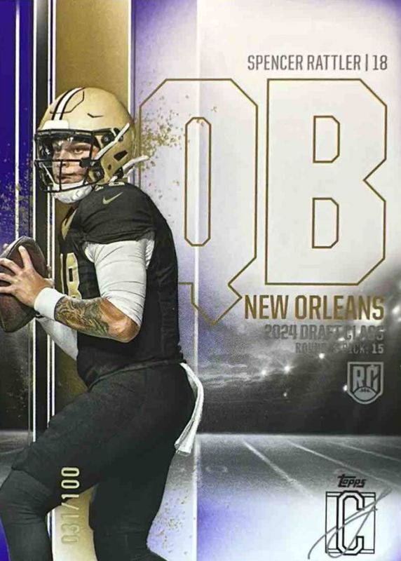 Spencer Rattler 2024 Topps Signature Class #154 Purple /100 Rookie RAW Price Guide