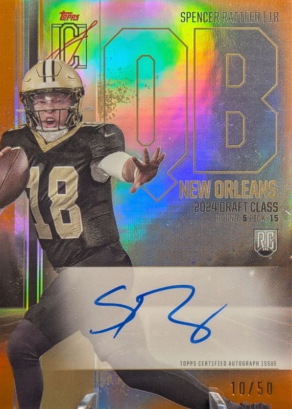 Spencer Rattler 2024 Topps Signature Class #RCV-SR Rookie Chrome Autographs - Orange Refractor /50 RAW Price Guide