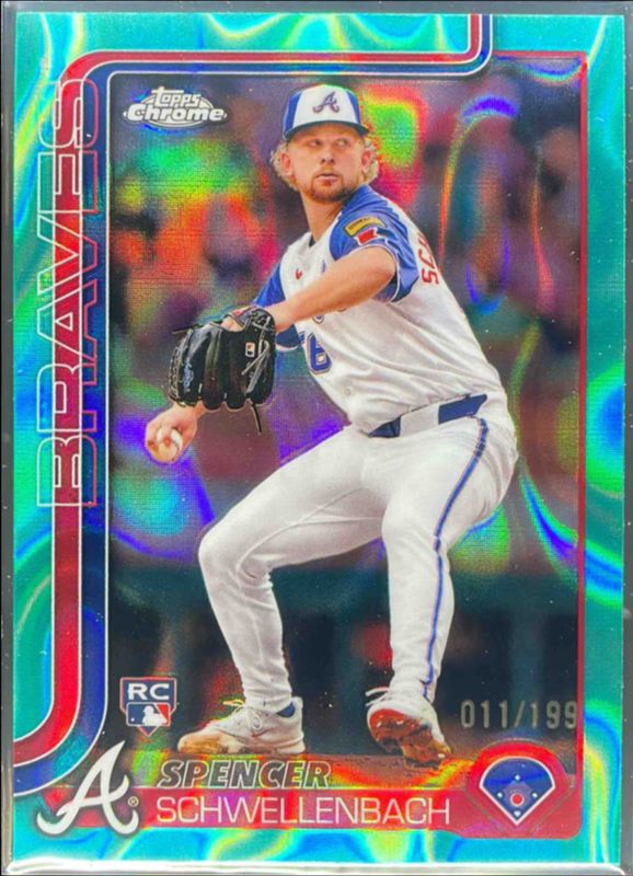 Spencer Schwellenbach 2025 Topps Chrome #203 Aqua Lava Refractor /199 Rookie RAW Price Guide