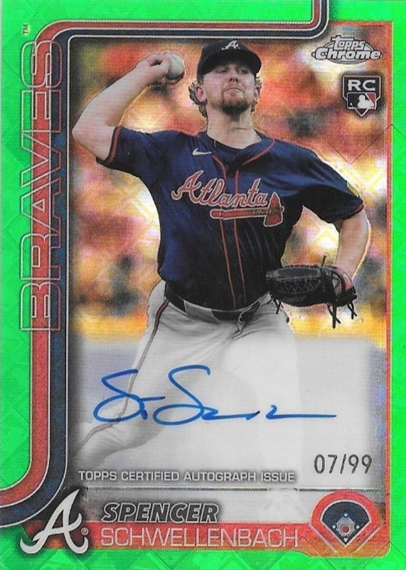 2025 Topps Chrome Logofractor Spencer Schwellenbach Green Auto #’d /99 RC Braves