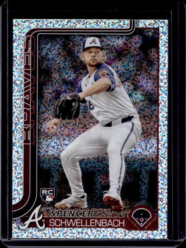 The Spencer Schwellenbach 2025 Topps #103 Confetti Rookie card is 1 of 149 Spencer Schwellenbach's card variations in the 2025 Topps set being tracked by Sports Card Investor, including Base, Aqua Holo Foil, Aqua Rainbow, Diamante Foil, and Eggs.