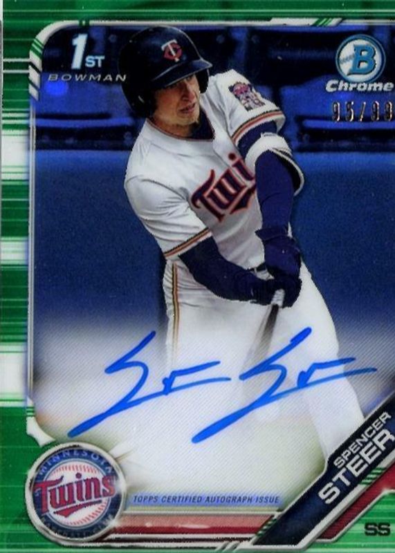 2019 Bowman Chrome Draft Spencer Steer Green Refractor Auto 92/99 SP CDA-SST