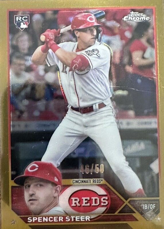Recent Sales of Spencer Steer 2023 Topps Chrome #146 Gold Refractor /50 Rookie Raw