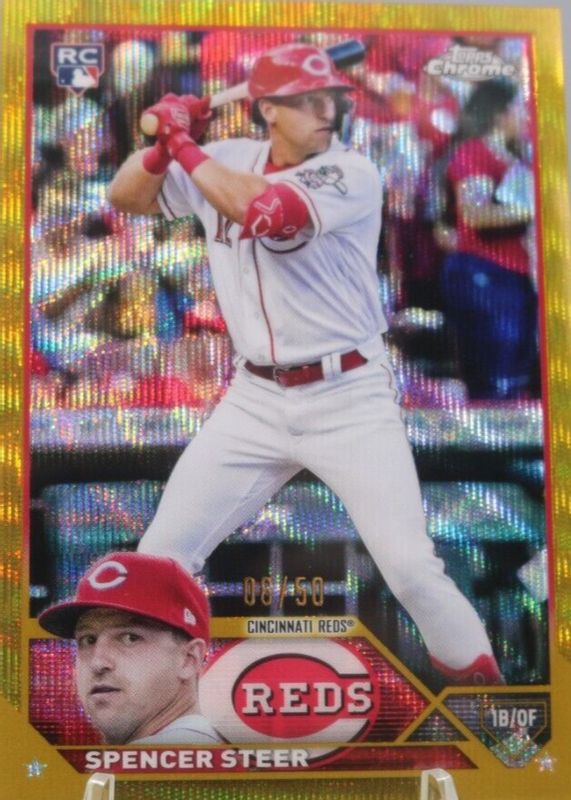 Recent Sales of Spencer Steer 2023 Topps Chrome #146 Gold Wave Refractor /50 Rookie Raw