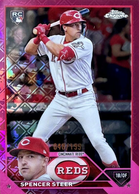2023 Topps Chrome SPENCER STEER Rookie Pink Logofractor #/199 #146 REDS
