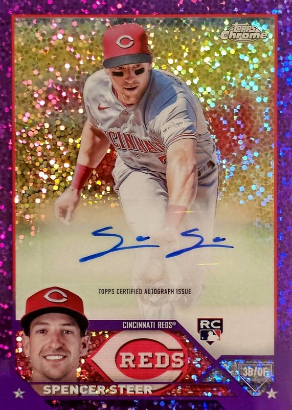 SPENCER STEER 2023 Topps Chrome Update Auto Purple Speckle Ref. /299 (RC) (REDS)