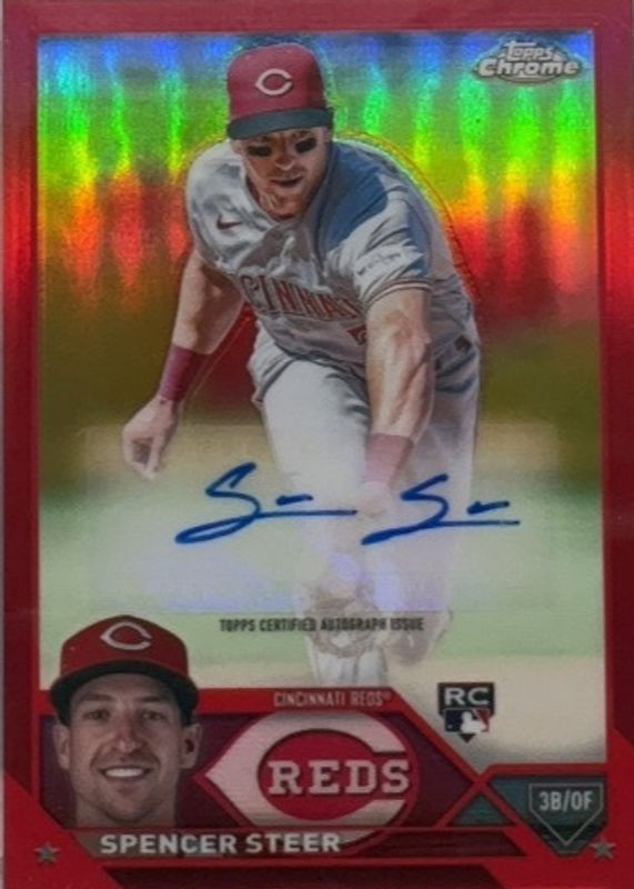 Auctions Ending Soon for Spencer Steer 2023 Topps Chrome Update #AC-SS Autographs - Red Refractor /5 Rookie RAW