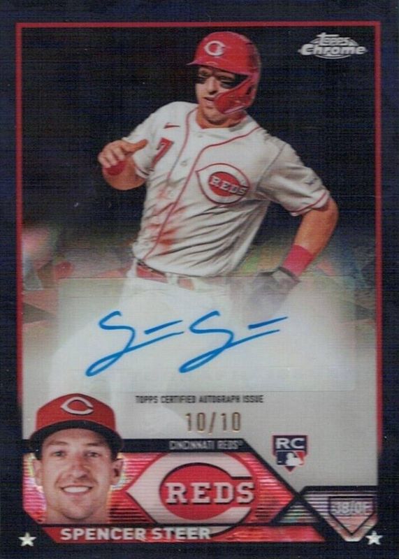Spencer Steer 2023 Topps Chrome Update Sapphire Edition #USA-SS Autographs - Black /10 Rookie RAW Price Guide