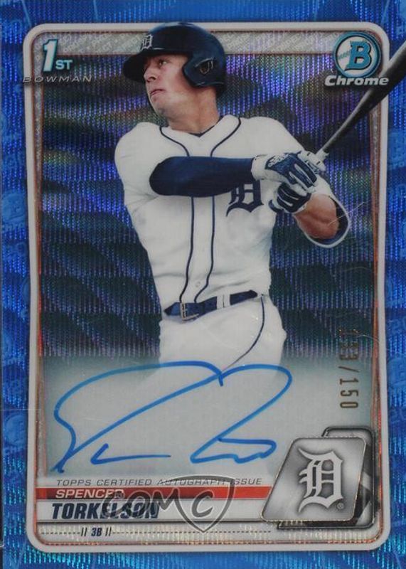Best Prices Available For Sale of Spencer Torkelson 2020 Bowman Draft #CDA-ST Chrome DP Auto - Blue Wave Refractor /150 (1st)