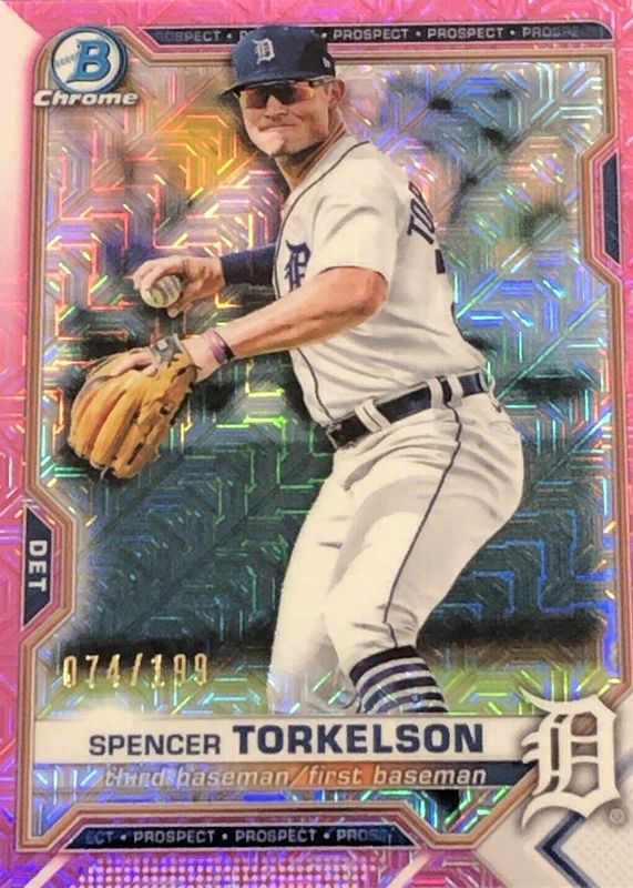 Best Prices Available For Sale of Spencer Torkelson 2021 Bowman Chrome Mega Box #BCP-187 Prospects - Pink Refractor /199