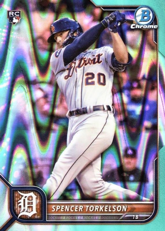 SPENCER TORKELSON 2022 Bowman Chrome Aqua Raywave Refractor 035/199 #53 RC