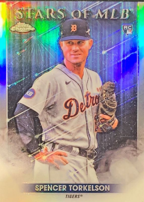 The Spencer Torkelson 2022 Topps Chrome Update #SMLB-76 Stars of MLB Rookie card in Raw condition has moved up $1.20 (+152%) in the last 30 days and was last sold for $1.99 .