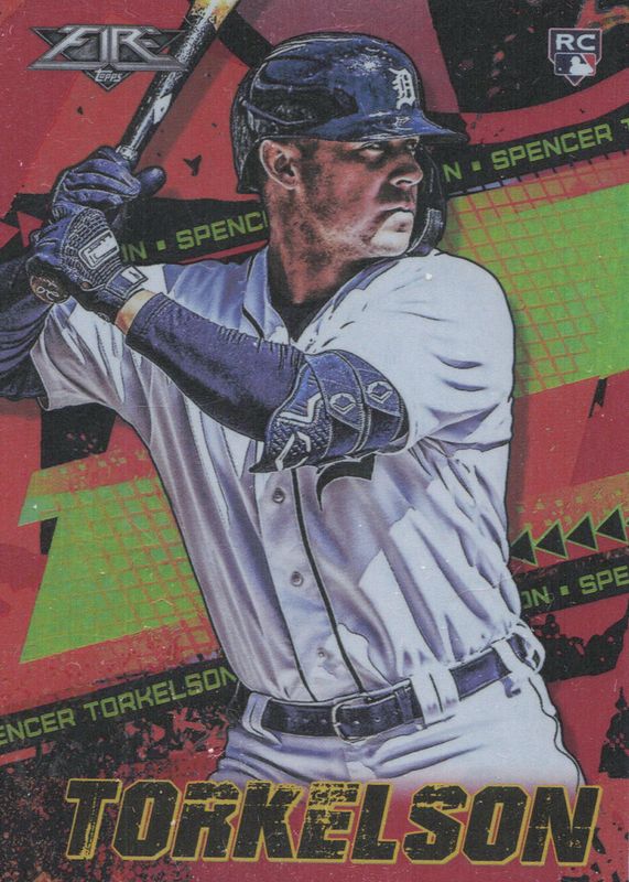 This card is 1 of 10 Spencer Torkelson's card variations in the 2022 Topps Fire set being tracked by Sports Card Investor, including Base, Flame, Gold Minted, Orange /299, and Green /199.