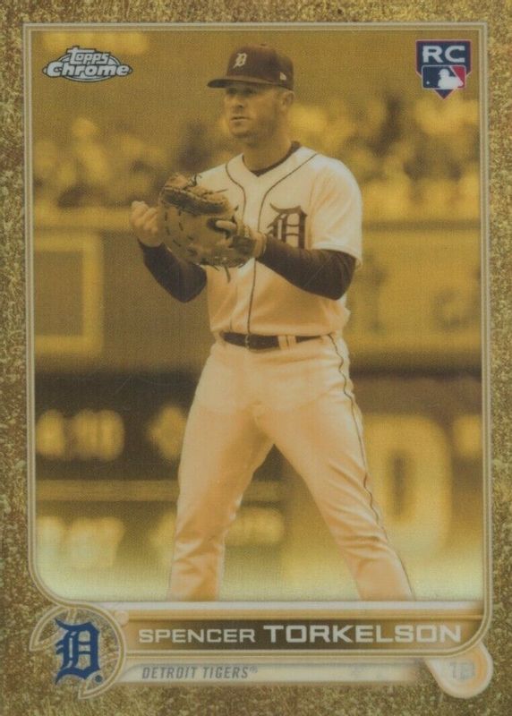 This card is 1 of 5 Spencer Torkelson's card variations in the 2022 Topps Gilded Collection set being tracked by Sports Card Investor, including Base /99, Cast in Gold - Superfractor /1, Topps Chrome Cast in Gold Autographs /199, and Topps Chrome Cast in Gold Autographs - SuperFractor /1.