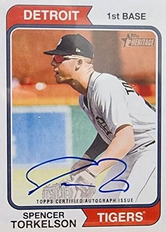 This card is 1 of 2 Spencer Torkelson's card variations in the 2023 Topps Heritage set being tracked by Sports Card Investor, including Real One Autographs - Red Ink /74.