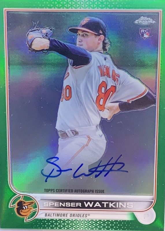 2022 Topps Chrome Green Refractor Rookie Auto #6/99 Spenser Watkins ORIOLES