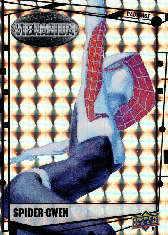 The Spider-Gwen 2015 Upper Deck Marvel Vibranium #37 Radiance Vibranium /50 card in Raw condition has not changed in price in the last 30 days and was last sold for $109.50 .