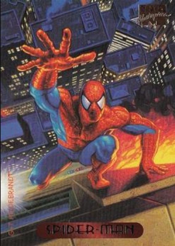 The Spider-Man 1994 Fleer Marvel Masterpieces Hildebrandt Brothers #115 Base card is 1 of 5 Spider-Man's card variations in the 1994 Fleer Marvel Masterpieces Hildebrandt Brothers set being tracked by Sports Card Investor, including Gold Foil Signatures, Bronze Holofoils, Gold Holofoils, and Silver Holofoils.