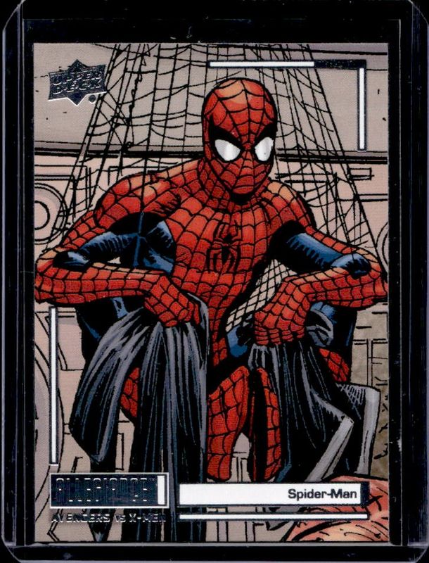 The Spider-Man 2023 Upper Deck Allegiance Avengers vs X-Men #C10 Base card is 1 of 27 Spider-Man's card variations in the 2023 Upper Deck Allegiance Avengers vs X-Men set being tracked by Sports Card Investor, including Black & White, Blue Rainbow, Gold Aurum, Rainbow, and Red Rainbow.