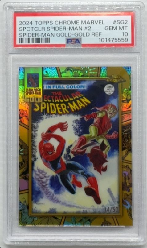 Spider-Man 2024 Topps Chrome #SG-2 Spider man Gold - Gold Refractor /50 PSA 2.5 Price Guide