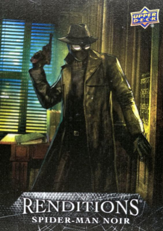 The Spider-Man Noir 2024 Upper Deck Marvel Spider-Man Renditions #18 Metal /25 card is 1 of 16 Spider-Man Noir's card variations in the 2024 Upper Deck Marvel Spider-Man Renditions set being tracked by Sports Card Investor, including Canvas Cover Variant, Legendary Responsibility Gaming Variant, Goblin Green /399, Hobgoblin Orange /299, and Ghost Spider Pink /199.