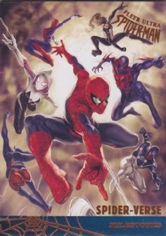 The Spider- 2017 Fleer Ultra Spider-Man #M-12 Milestones card is 1 of 29 Spider-'s card variations in the 2017 Fleer Ultra Spider-Man set being tracked by Sports Card Investor, including Silver Web Foil, Printing Plate Black /1, Printing Plate Cyan /1, Printing Plate Magenta /1, and Printing Plate Yellow /1.