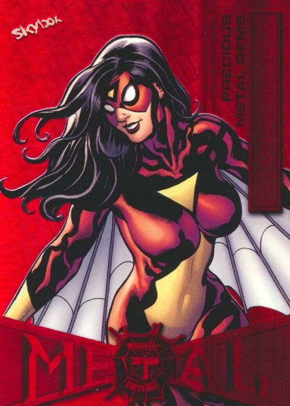 Spider-Woman 2021 Skybox Marvel Metal Universe Spider-Man #87 Precious Metal Gems Red /90 RAW Price Guide