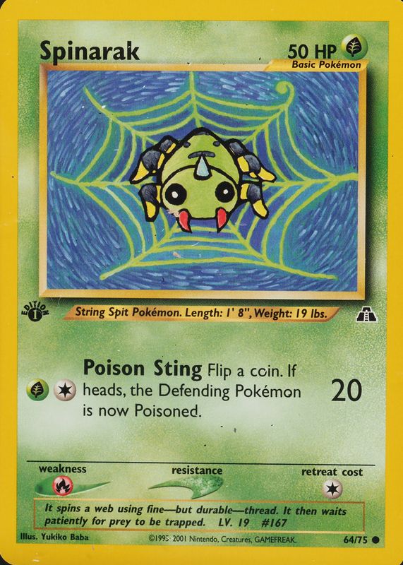 Pokemon TCG - Spinarak 64/75 1st Edition Common - WOTC Neo Discovery - NM