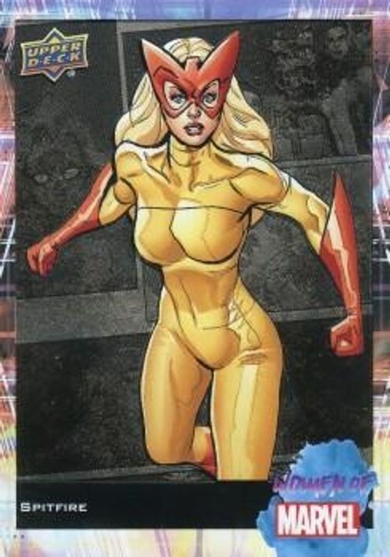 The Spitfire 2024 Upper Deck Women of Marvel #36 Base card is 1 of 7 Spitfire's card variations in the 2024 Upper Deck Women of Marvel set being tracked by Sports Card Investor, including Foil Lt Fx Blue, Foil Lt Fx Copper, Foil Lt Fx Red, Foil Lt Fx Green /99, and Foil Lt Fx Gold /33.