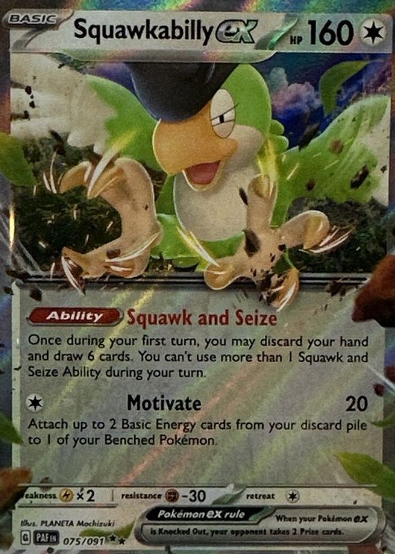 Holo Squawkabilly ex - 075/091 Double Rare Paldean Fates Pokemon TCG - NM