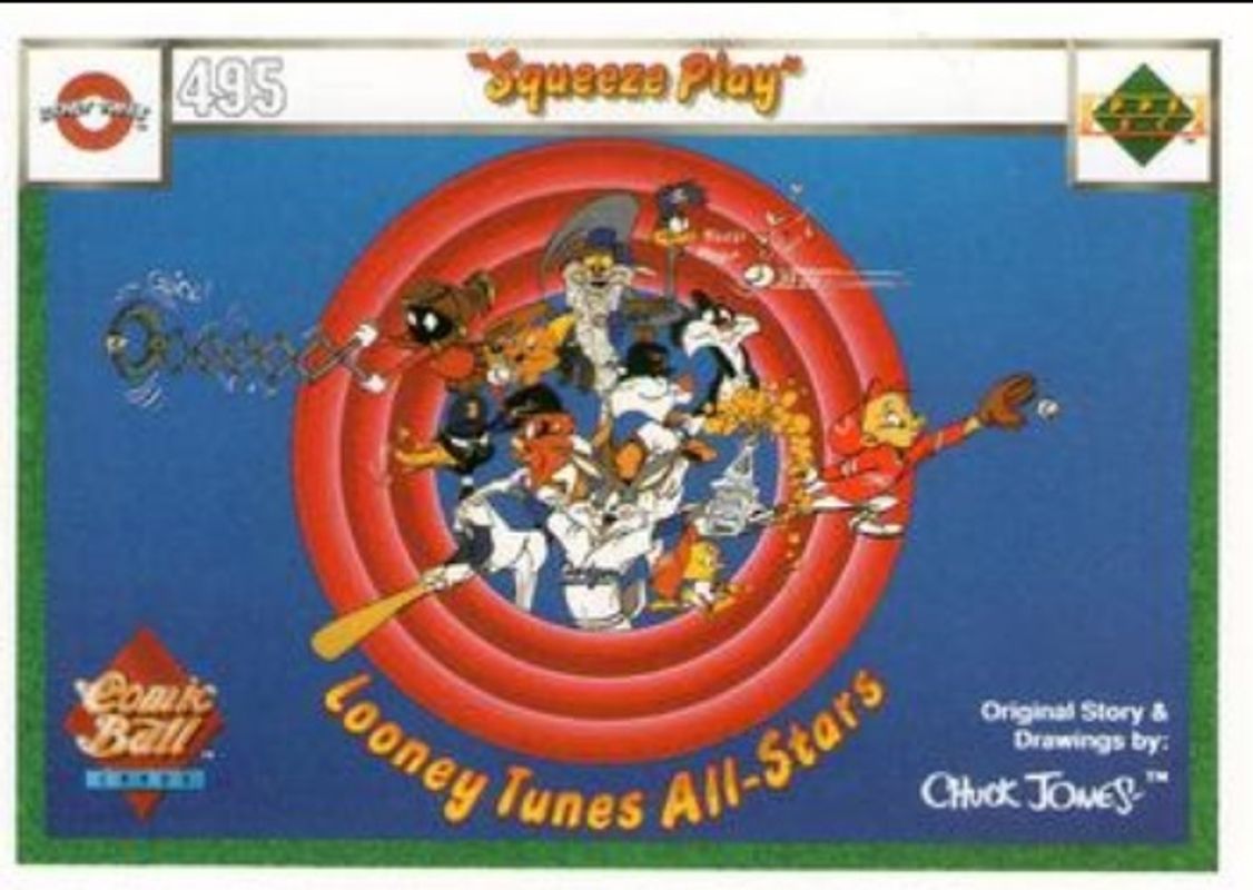 The Squeeze Play 1990 Upper Deck Comic Ball #495-/-498 Base card is 1 of 32 Squeeze Play's card variations in the 1990 Upper Deck Comic Ball set being tracked by Sports Card Investor, including #487-/-502 Base, #488-/-503 Base, #489-/-504 Base, #490-/-499 Base, and #491-/-500 Base.