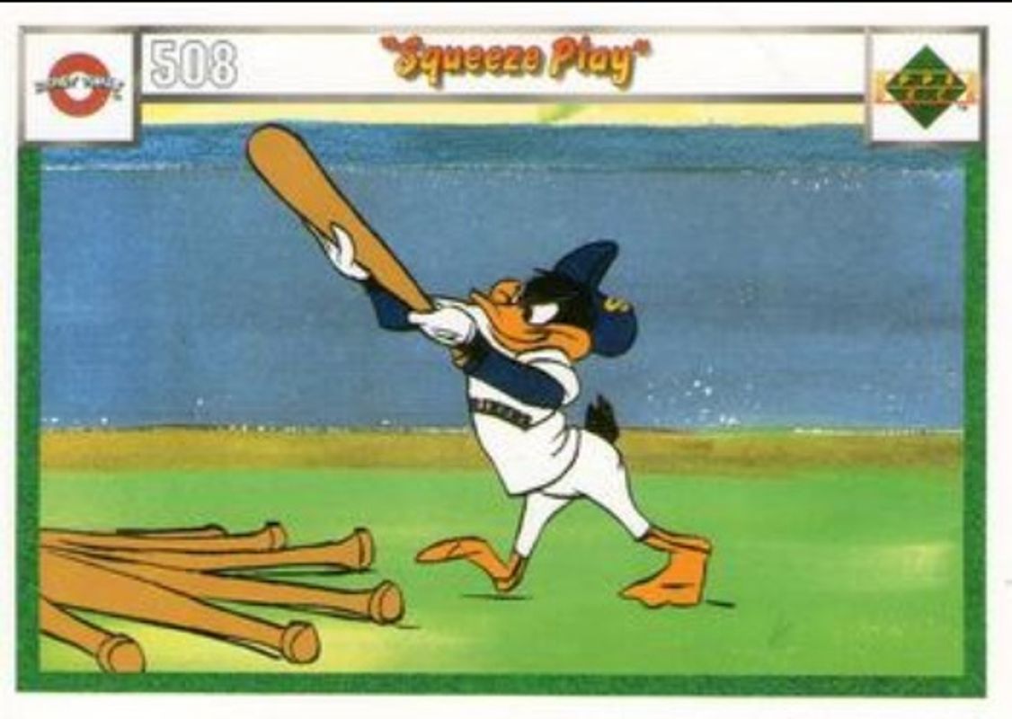 The Squeeze Play 1990 Upper Deck Comic Ball #508-/-517 Base card is 1 of 32 Squeeze Play's card variations in the 1990 Upper Deck Comic Ball set being tracked by Sports Card Investor, including #487-/-502 Base, #488-/-503 Base, #489-/-504 Base, #490-/-499 Base, and #491-/-500 Base.