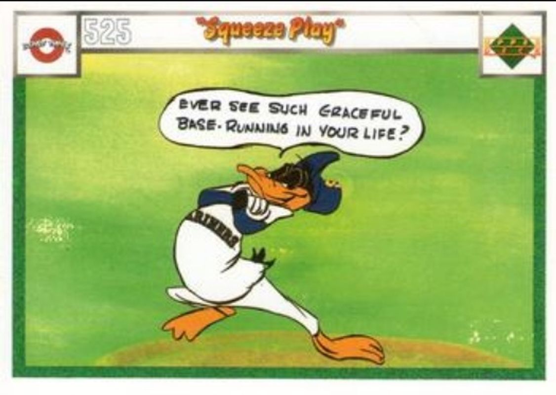 The Squeeze Play 1990 Upper Deck Comic Ball #525-/-540 Base card is 1 of 32 Squeeze Play's card variations in the 1990 Upper Deck Comic Ball set being tracked by Sports Card Investor, including #487-/-502 Base, #488-/-503 Base, #489-/-504 Base, #490-/-499 Base, and #491-/-500 Base.