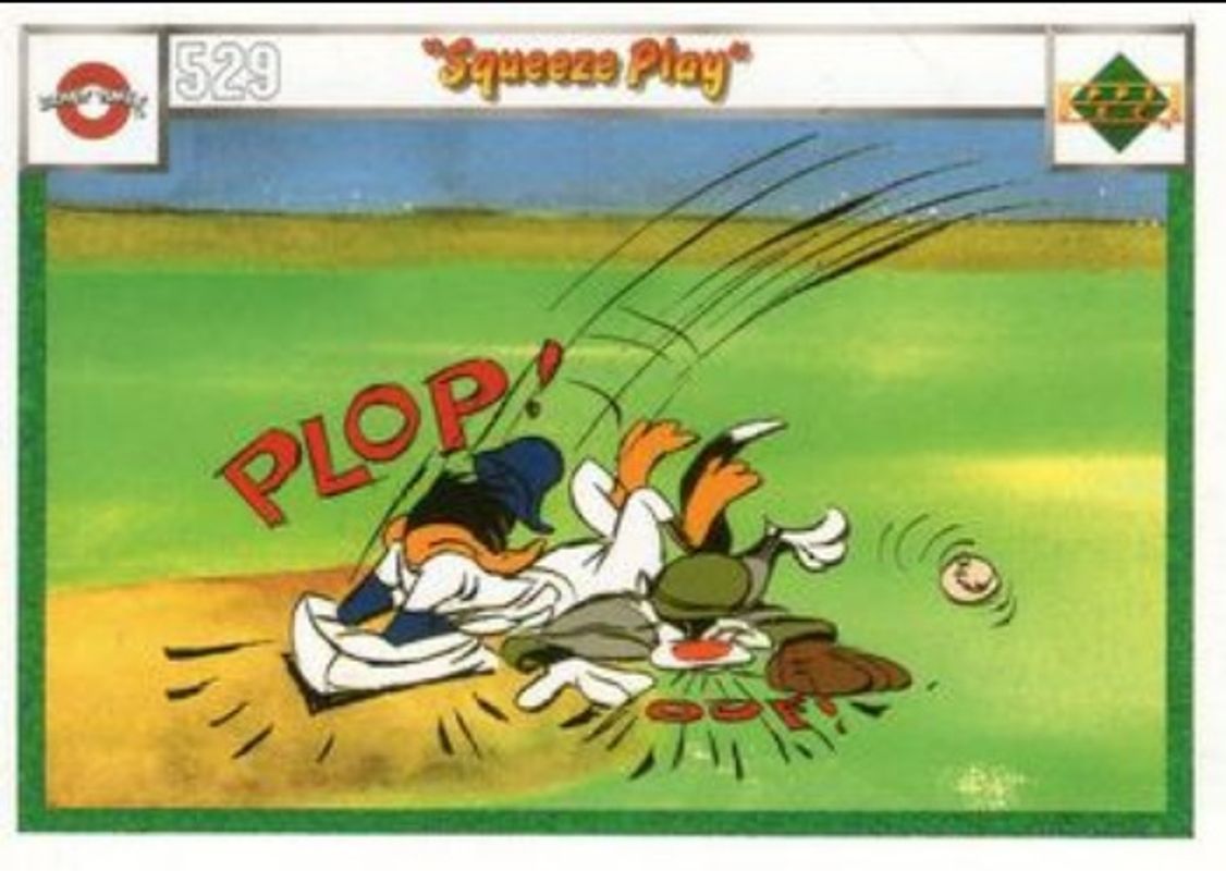 The Squeeze Play 1990 Upper Deck Comic Ball #529-/-532 Base card is 1 of 32 Squeeze Play's card variations in the 1990 Upper Deck Comic Ball set being tracked by Sports Card Investor, including #487-/-502 Base, #488-/-503 Base, #489-/-504 Base, #490-/-499 Base, and #491-/-500 Base.
