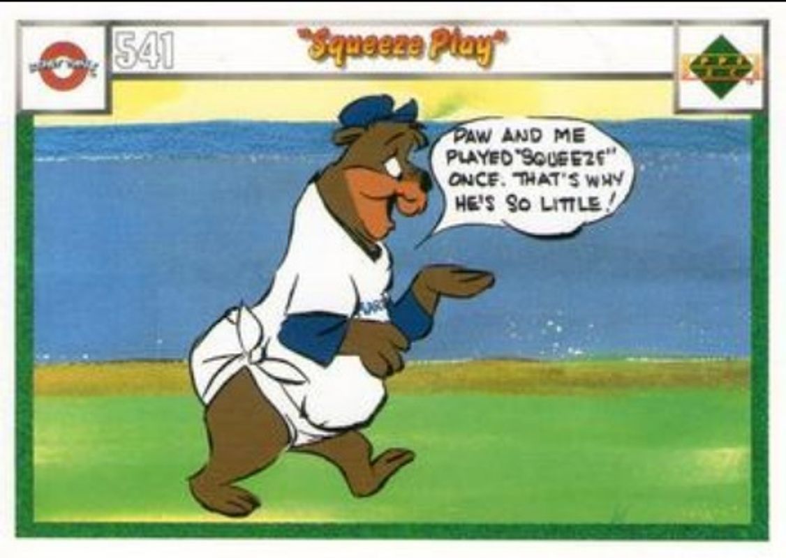 The Squeeze Play 1990 Upper Deck Comic Ball #541-/-556 Base card is 1 of 32 Squeeze Play's card variations in the 1990 Upper Deck Comic Ball set being tracked by Sports Card Investor, including #487-/-502 Base, #488-/-503 Base, #489-/-504 Base, #490-/-499 Base, and #491-/-500 Base.