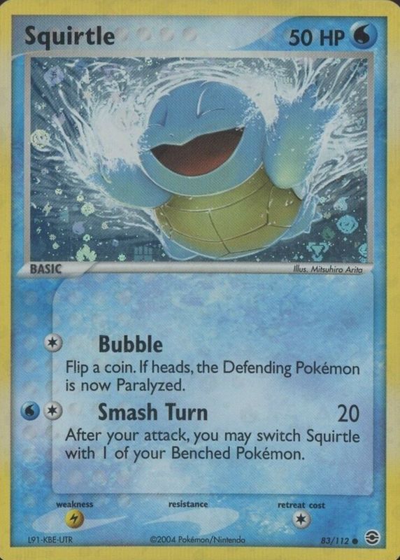 This card is 1 of 4 Squirtle's card variations in the 2004 EX: FireRed & LeafGreen set being tracked by Sports Card Investor, including #082/112 Base, #083/112 Base, and #082/112 Reverse Holo.