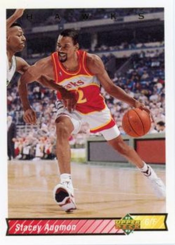 The Stacey Augmon 1992 Upper Deck #142 Base card is 1 of 7 Stacey Augmon's card variations in the 1992 Upper Deck set being tracked by Sports Card Investor, including #68a Base, #312 Base, #68 Base, #68b Base, and #AR5 All Rookie Team.