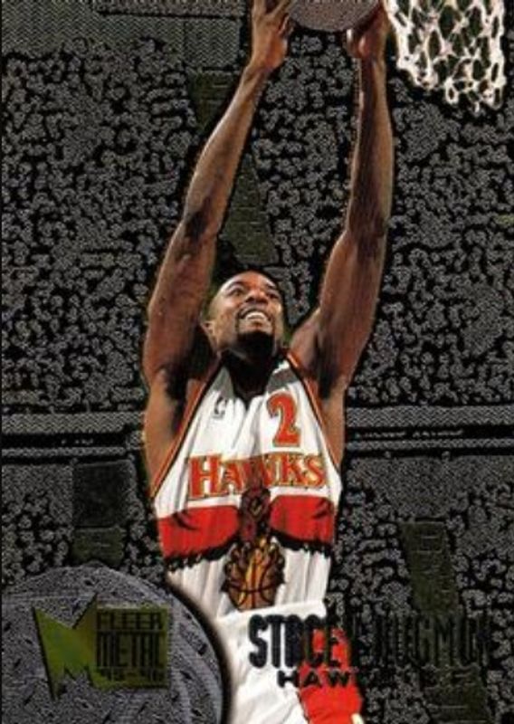 The Stacey Augmon 1995 Metal #121 Base card is 1 of 3 Stacey Augmon's card variations in the 1995 Metal set being tracked by Sports Card Investor, including Base, and Silver Spotlight.