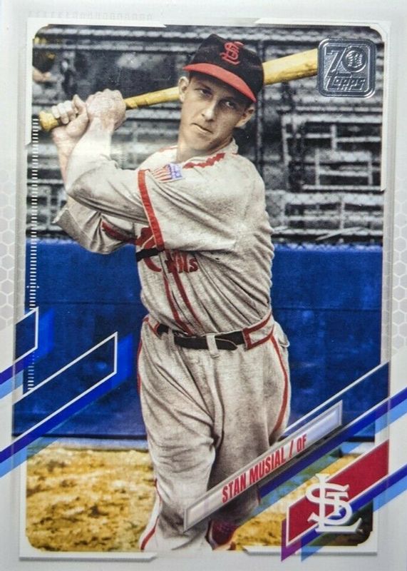 This card is 1 of 3 Stan Musial's card variations in the 2021 Topps set being tracked by Sports Card Investor, including SP Variation (Series 1), and SSP Variation.