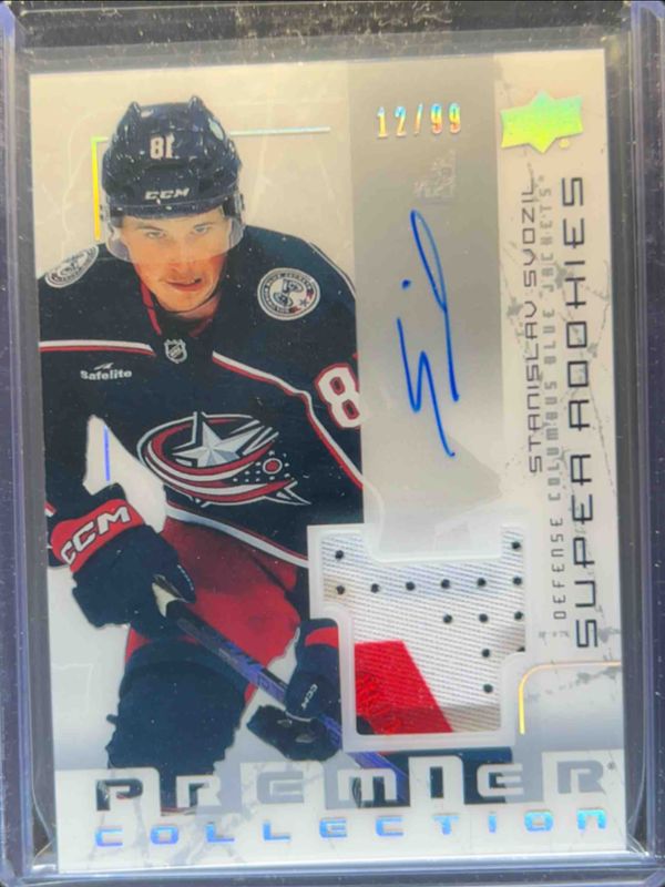 The Stanislav Svozil 2023 Upper Deck Premier #SRR-SS 2003-04 Rookie Patch Auto /49 card is 1 of 23 Stanislav Svozil's card variations in the 2023 Upper Deck Premier set being tracked by Sports Card Investor, including Base /399, Bronze /199, Gold /65, Ruby /49, and Rose Gold /25.