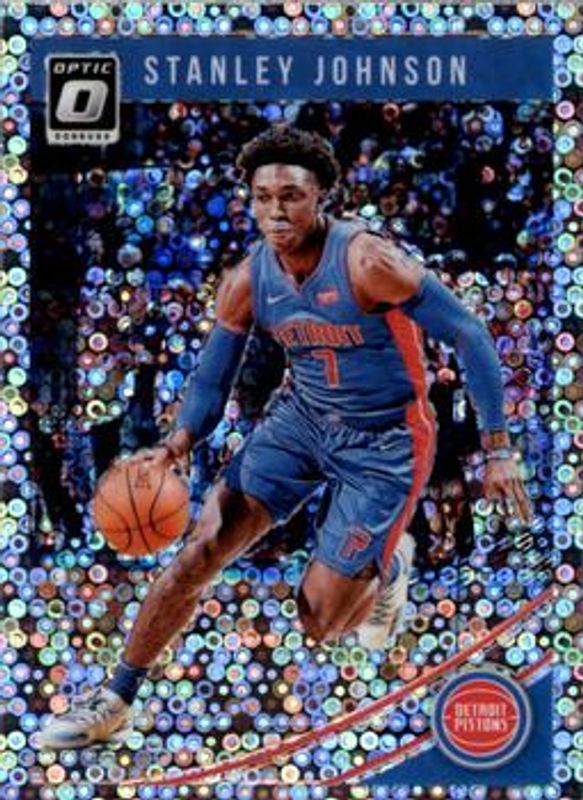 The Stanley Johnson 2018 Optic #130 Fast Break card is 1 of 20 Stanley Johnson's card variations in the 2018 Optic set being tracked by Sports Card Investor, including Base, Checkerboard, Holo, Purple, and Premium Box Set /249.