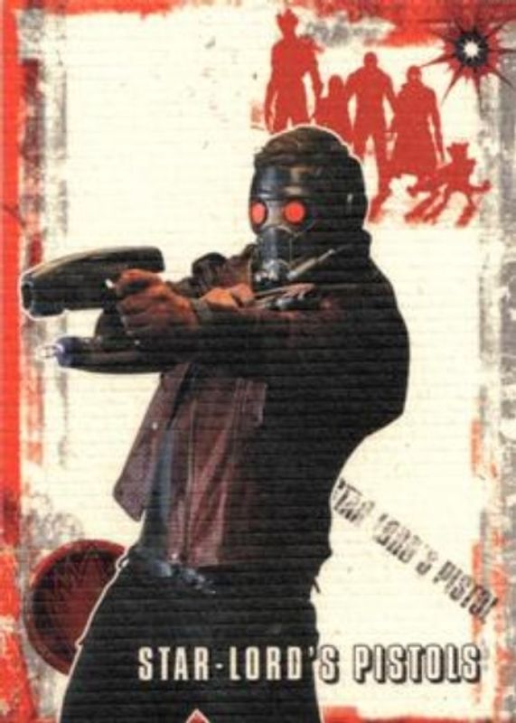 The Star-Lord 2014 Upper Deck Guardians of the Galaxy #BOOM-5 Weapons card is 1 of 34 Star-Lord's card variations in the 2014 Upper Deck Guardians of the Galaxy set being tracked by Sports Card Investor, including Base, Bronze, Retail, Purple /25, and Character Sketches.