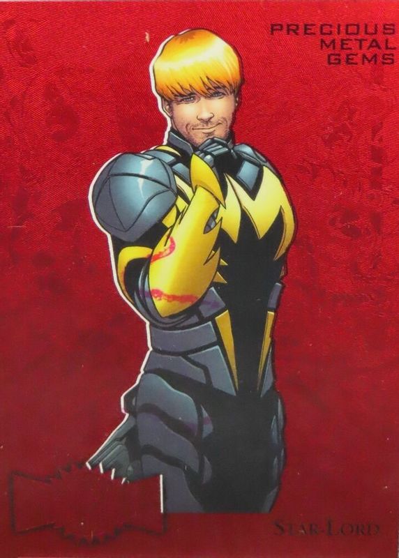 The Star-Lord 2015 Fleer Retro #35 Precious Metal Gems Red /100 card in Raw condition has not changed in price in the last 30 days and was last sold for $124.99 .