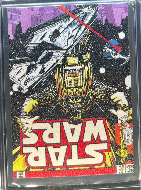 The Star Wars 2024 Topps Star Wars Masterwork #MC-13 Marvel Comic Covers - Canvas /25 card is 1 of 330 Star Wars' card variations in the 2024 Topps Star Wars Masterwork set being tracked by Sports Card Investor, including #MC-1 Marvel Comic Covers, #MC-9 Marvel Comic Covers, #MC-8 Marvel Comic Covers, #MC-7 Marvel Comic Covers, and #MC-6 Marvel Comic Covers.