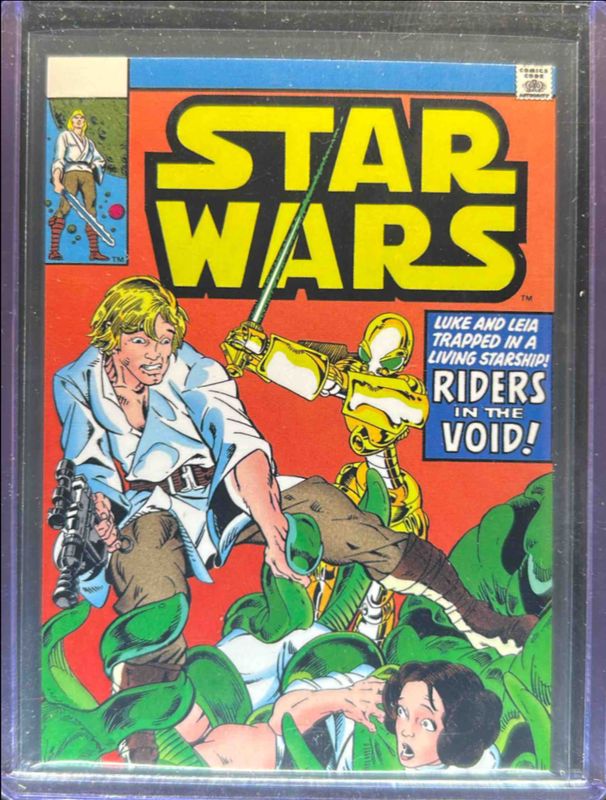 The Star Wars 2024 Topps Star Wars Masterwork #MC-11 Marvel Comic Covers card is 1 of 330 Star Wars' card variations in the 2024 Topps Star Wars Masterwork set being tracked by Sports Card Investor, including #MC-1 Marvel Comic Covers, #MC-9 Marvel Comic Covers, #MC-8 Marvel Comic Covers, #MC-7 Marvel Comic Covers, and #MC-6 Marvel Comic Covers.