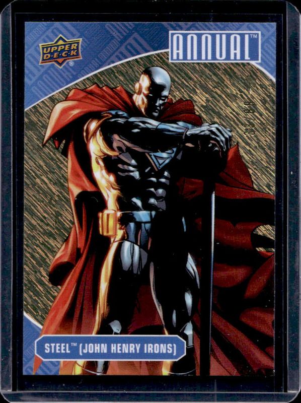 The Steel 2023 Upper Deck DC Annual #67 Gold Linearity /88 card is 1 of 30 Steel's card variations in the 2023 Upper Deck DC Annual set being tracked by Sports Card Investor, including #95 Base, #67 Base, #95 Blue, #67 Blue, and #95 Silver Sparkle.