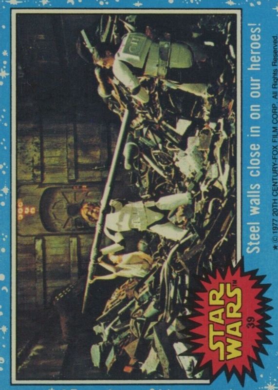 Steel Walls Close in on Our Heroes!'s Star Wars cards are available in at least 1 sets. Steel Walls Close in on Our Heroes!'s biggest 7-day price movers are 1977 Topps #39 Base.