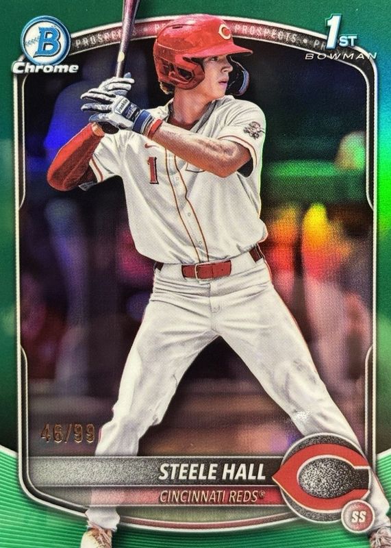 2025 Bowman Draft Steele Hall Chrome Green Refractor 1st Prospect #/99 Reds