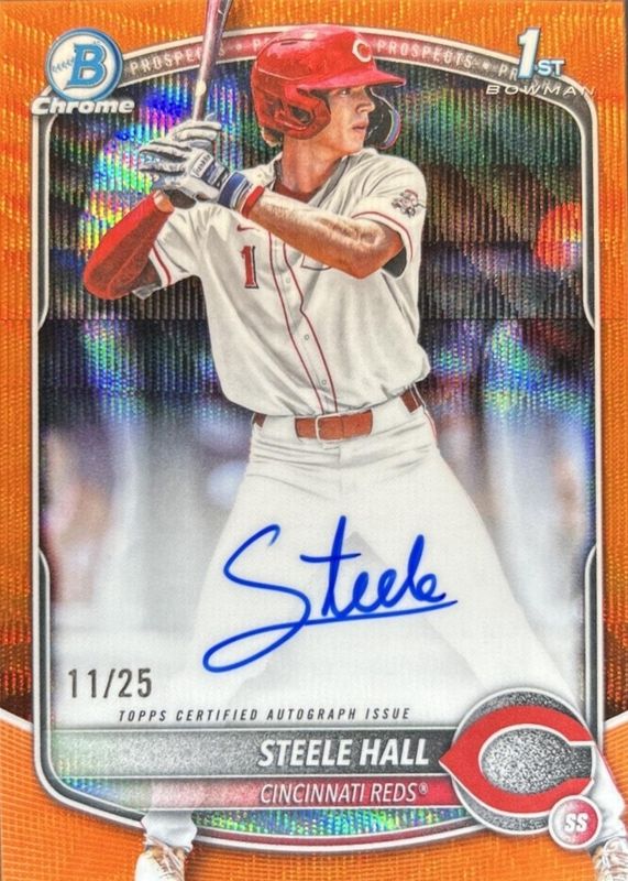 2025 Bowman Draft Steele Hall Chrome Auto Orange Wave Refractor 1st #/25 Reds